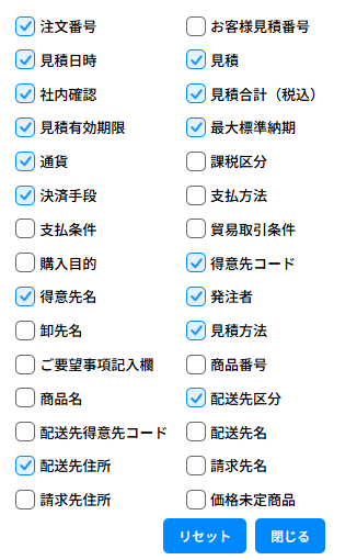 見積一覧の表示項目を変更します。