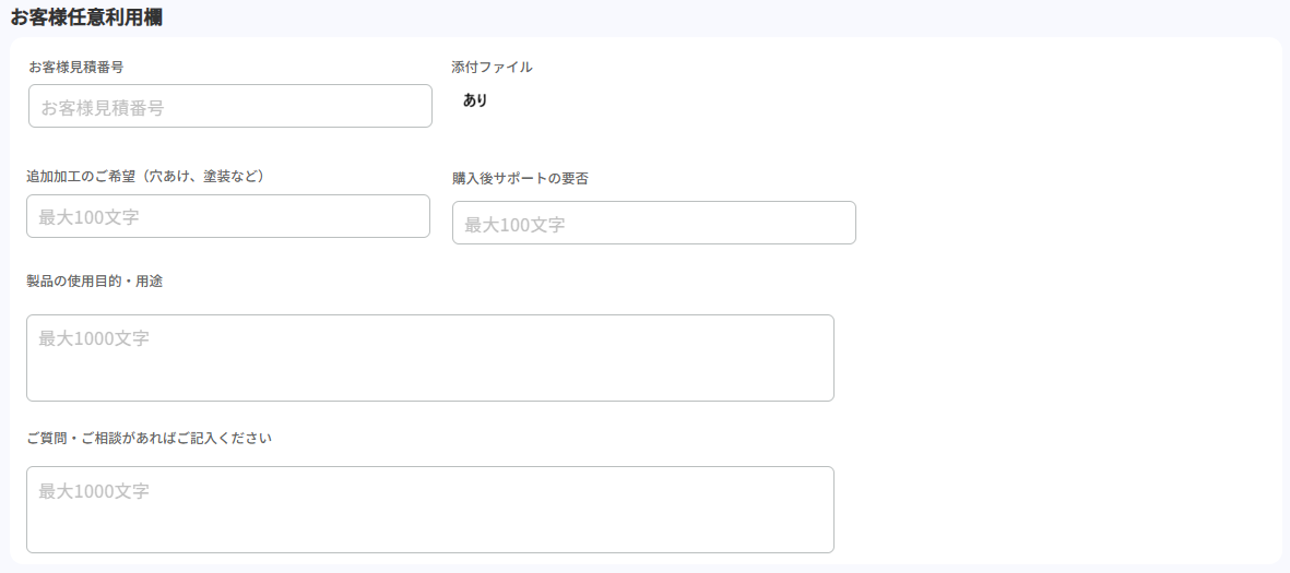 | 問い合わせ | この見積について会員に問い合わせたい内容がある場合は、こちらをクリックしてください。 |