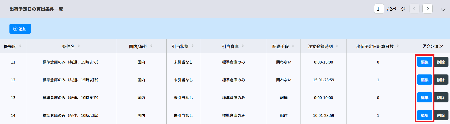 更新したい算出条件の行の、「編集」ボタンをクリックしてください。
