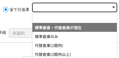 どのような倉庫(標準倉庫、代替倉庫など)から引当されているかを、プルダウン選択する必要があります。