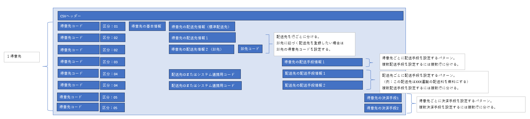 ここでは、得意先を登録更新する CSV ファイルについてご紹介します。