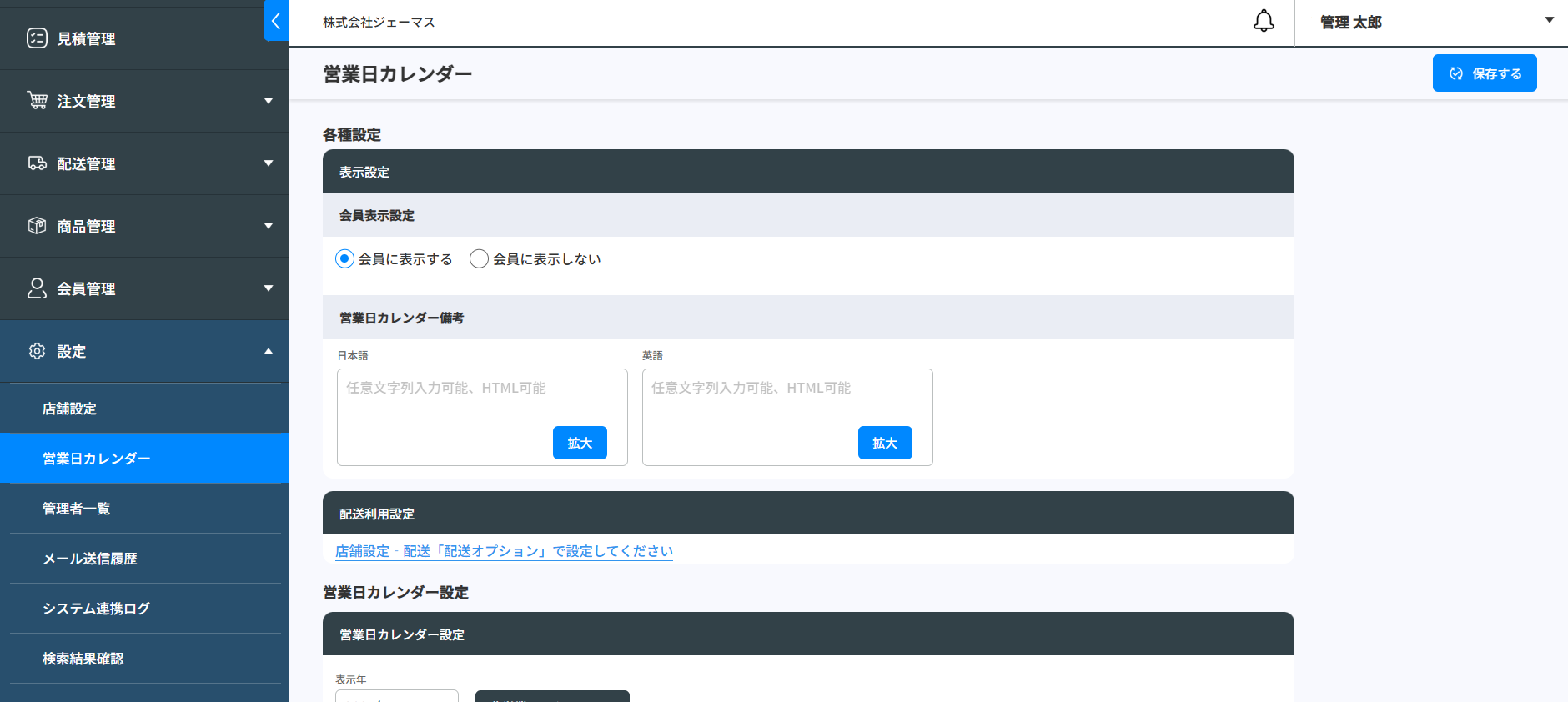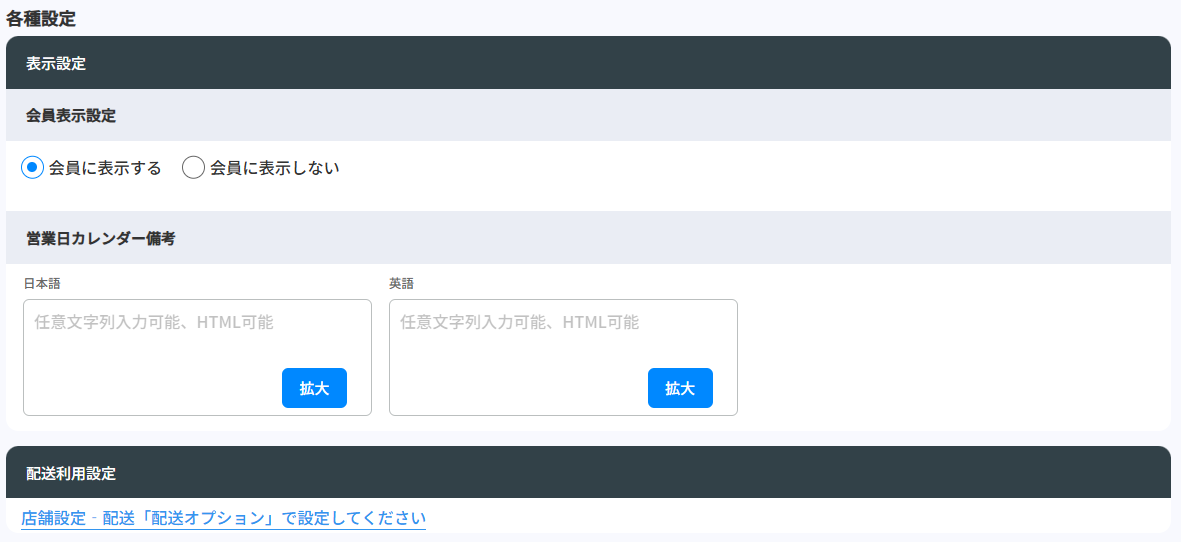 会員表示設定営業日カレンダーを会員に表示するかどうかを設定します。