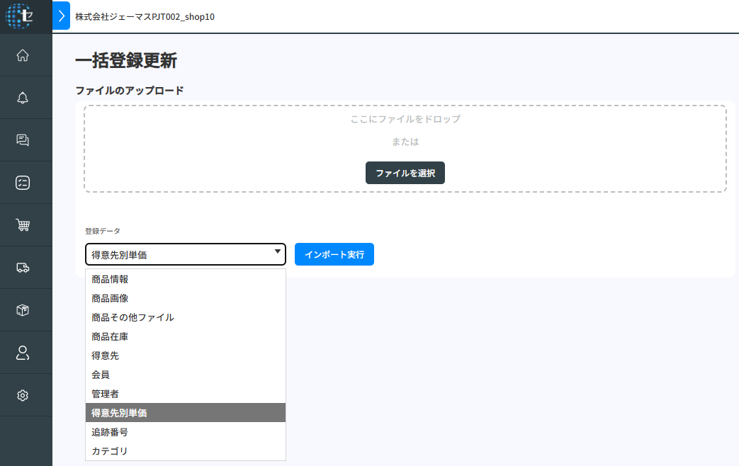 作成した CSV ファイルを、一括登録更新画面でアップロードします。